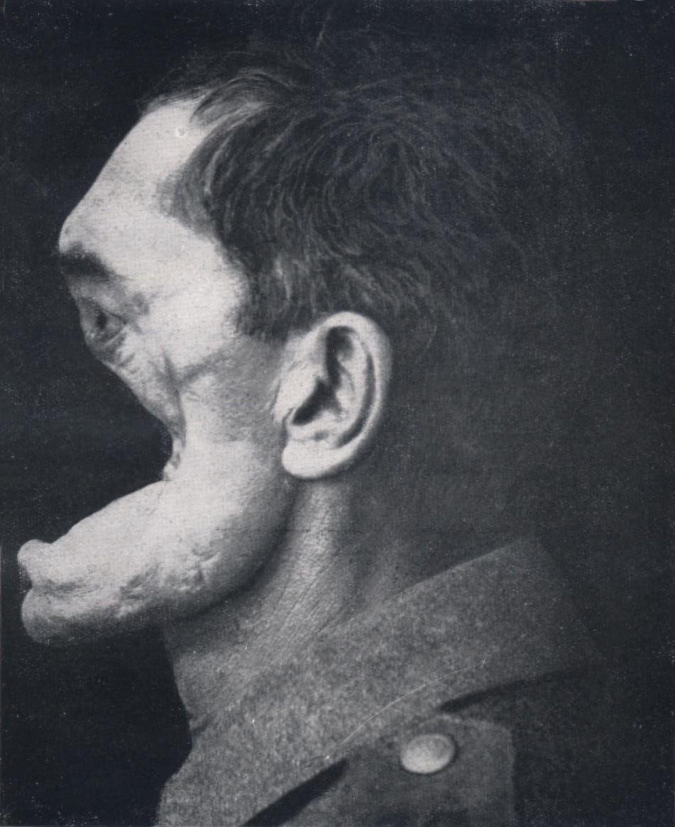 Warning: This article contains a disturbing image of war injury from Ernst Friedrich's book "War Against War" (1924). Friedrich published these images to show what war does to human beings. I show it for the same reason.
